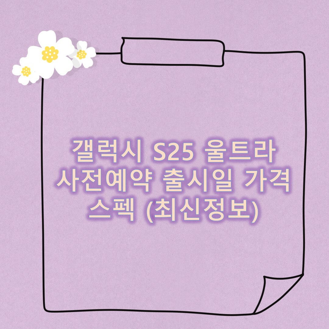 갤럭시 S25 울트라 사전예약 최신정보 대공개! 갤럭시 S25 울트라 사전예약! 출시일, 가격, 스펙, 혜택까지 한눈에 정리! 경쟁자보다 빠르게 예약 성공하는 꿀팁 공개합니다 갤럭시 S25 울트라 출시일 정보갤럭시 S25 울트라는 2025년 2월에 공식 출시될 것으로 예상됩니다. 사전예약은 출시일 약 2주 전부터 진행될 가능성이 높으며, 2025년 2월 초가 유력합니다.삼성은 매년 갤럭시 S 시리즈를 2월에 공개해 왔으며, 이번에도 큰 변화는 없을 것으로 보입니다. 사전예약 혜택을 최대한 활용하려면 출시일을 놓치지 않도록 알림 설정을 추천합니다. 사전예약 시작 2025년 1월24일정시 출시일 2025년 2월 7일갤럭시 S25 울트라 가격 정보갤럭시 S25 울트라는 이전 모델보다 약간의 가격 상승이 예상됩..