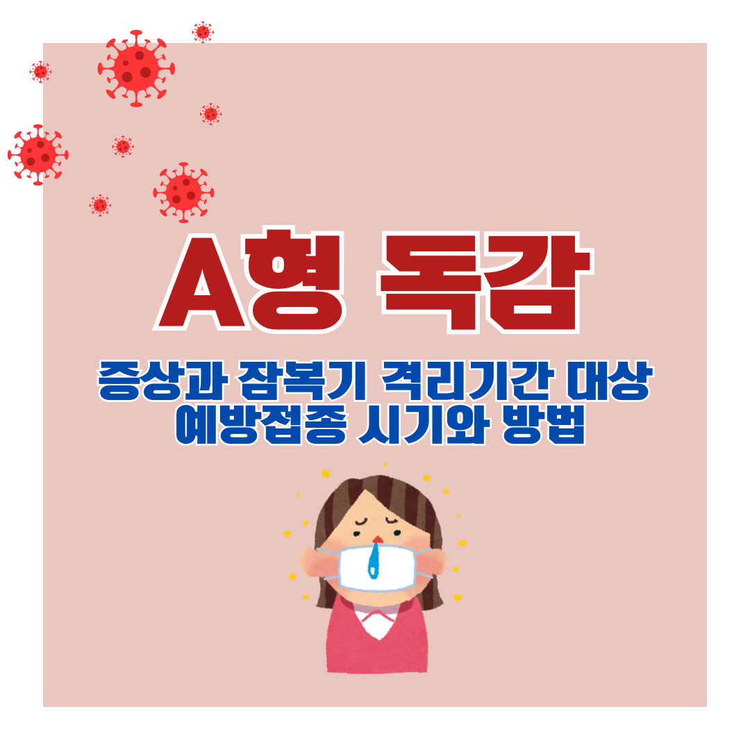 A형 독감, 방치하면 위험할 수 있습니다! 증상, 잠복기부터 격리기간, 예방접종까지 알아두면 가족과 나를 지킬 수 있습니다. 지금 확인하세요!A형 독감이란?A형 독감은 인플루엔자 A형 바이러스에 의해 발생하는 급성 호흡기 질환입니다. 흔히 "독감"이라고 불리지만, 일반 감기와는 다르게 갑작스럽게 심한 증상이 나타나며, 합병증 위험이 높아 빠른 대처가 필요합니다.A형 독감의 주요 증상고열 (38~40℃)심한 두통근육통 및 관절통극심한 피로감기침 및 인후통콧물 또는 코막힘구토와 설사 (특히 어린이)이러한 증상이 갑작스럽게 나타난다면 즉시 병원을 방문해 정확한 진단을 받아야 합니다.잠복기A형 독감의 잠복기는 1~4일로 비교적 짧습니다. 바이러스에 노출된 후 빠르게 증상이 나타나며, 이로 인해 조기 대처가 매우..