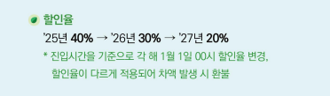 - 할인 기간 : 2025년 1월1일(수) ~ 2027년 12월31일(금)