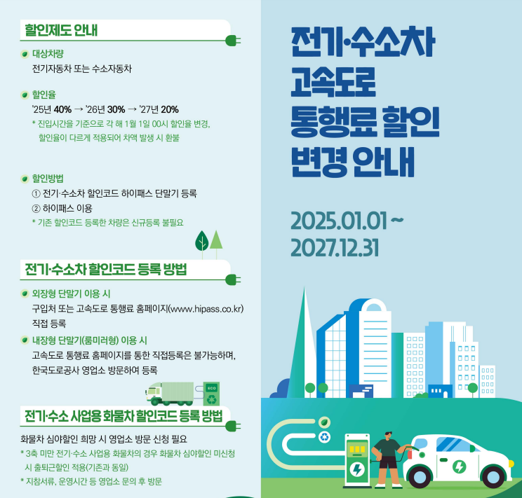 전기·수소차로 고속도로를 더 저렴하게! 통행료 할인 대상 차량부터 등록 방법, 할인 혜택까지 한눈에 정리했습니다. 당신의 친환경 차량 혜택, 놓치지 마세요!