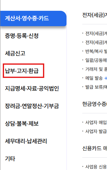 - 홈텍스 로그인 후, [환급금 조회] 클릭