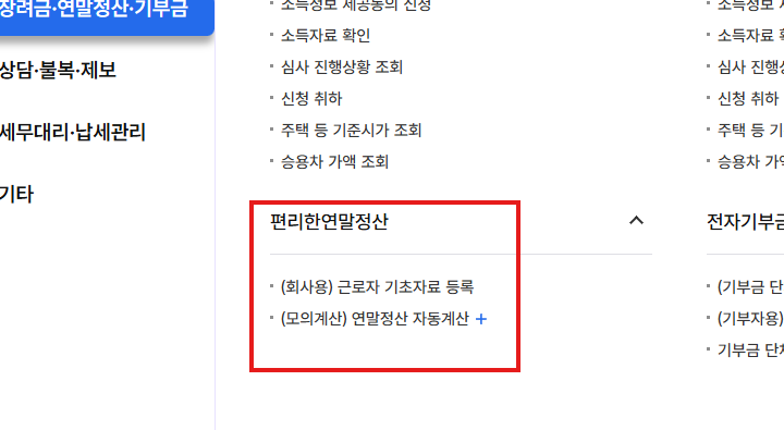 홈텍스에서 연말정산 미리보기 이용 방법